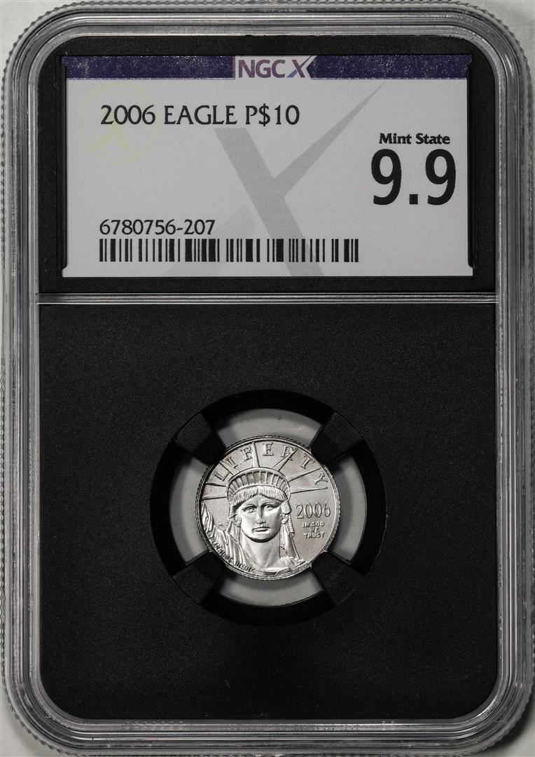 One 2006 $10 Platinum American Eagle Coin NGCX Mint State 9.9. NGCX Certified.