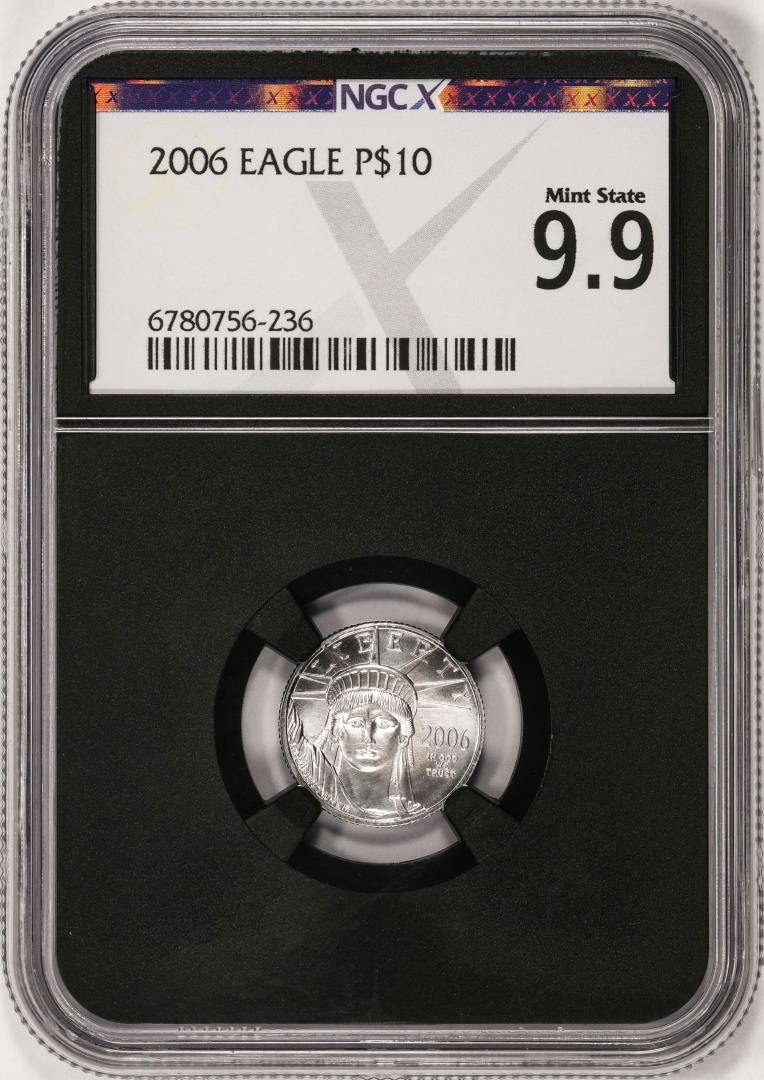 One 2006 $10 Platinum American Eagle Coin NGCX Mint State 9.9. NGCX Certified.