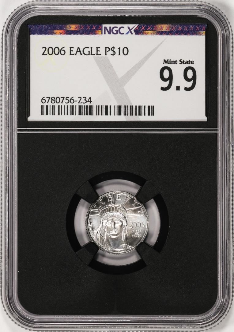 One 2006 $10 Platinum American Eagle Coin NGCX Mint State 9.9. NGCX Certified.