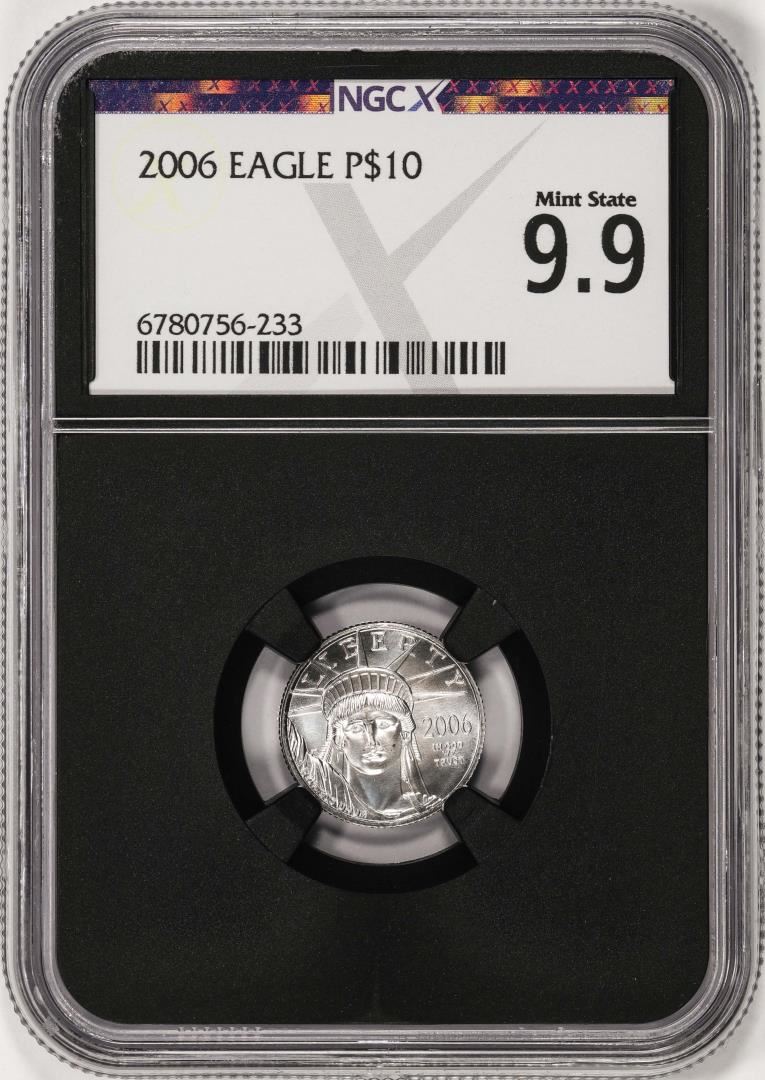 One 2006 $10 Platinum American Eagle Coin NGCX Mint State 9.9. NGCX Certified.