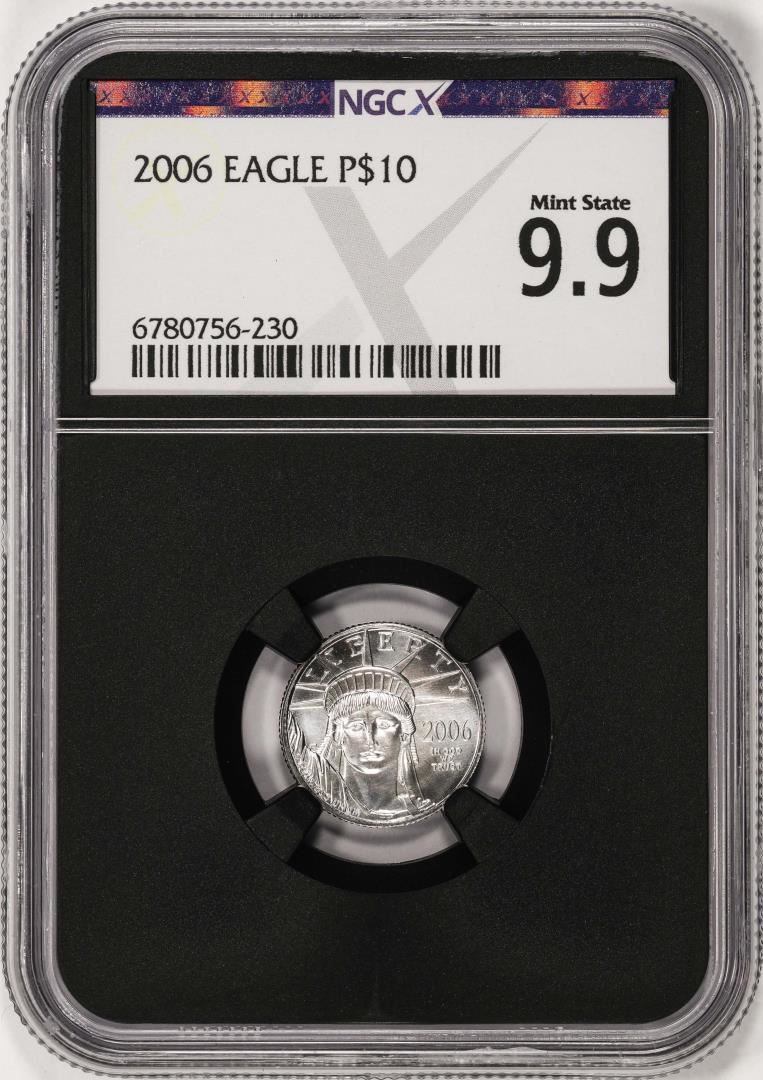 One 2006 $10 Platinum American Eagle Coin NGCX Mint State 9.9. NGCX Certified.