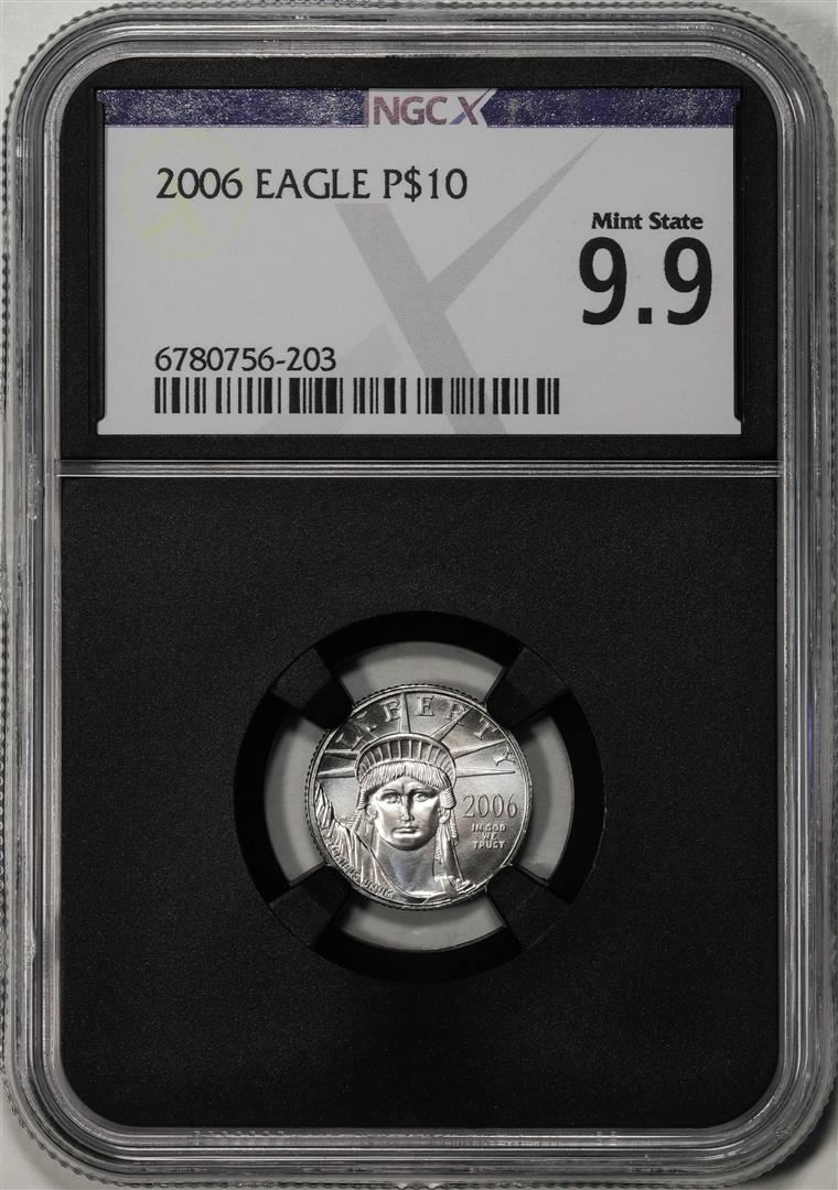 One 2006 $10 Platinum American Eagle Coin NGCX Mint State 9.9. NGCX Certified.
