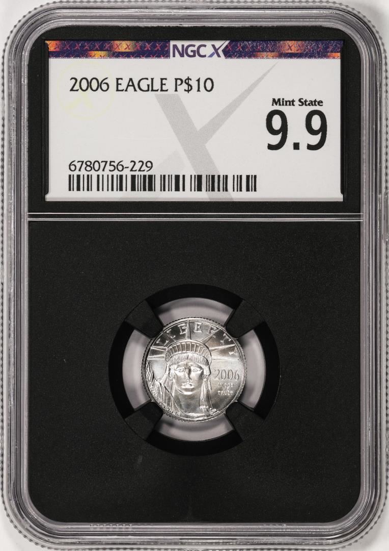 One 2006 $10 Platinum American Eagle Coin NGCX Mint State 9.9. NGCX Certified.