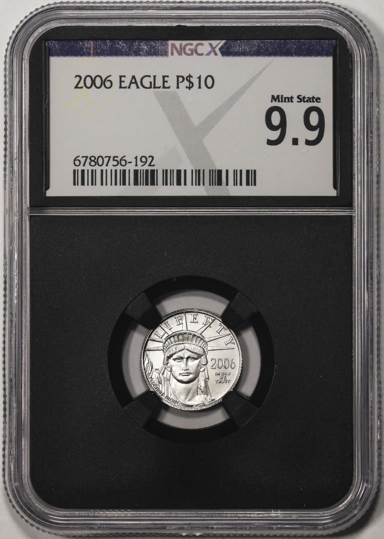 One 2006 $10 Platinum American Eagle Coin NGCX Mint State 9.9. NGCX Certified.