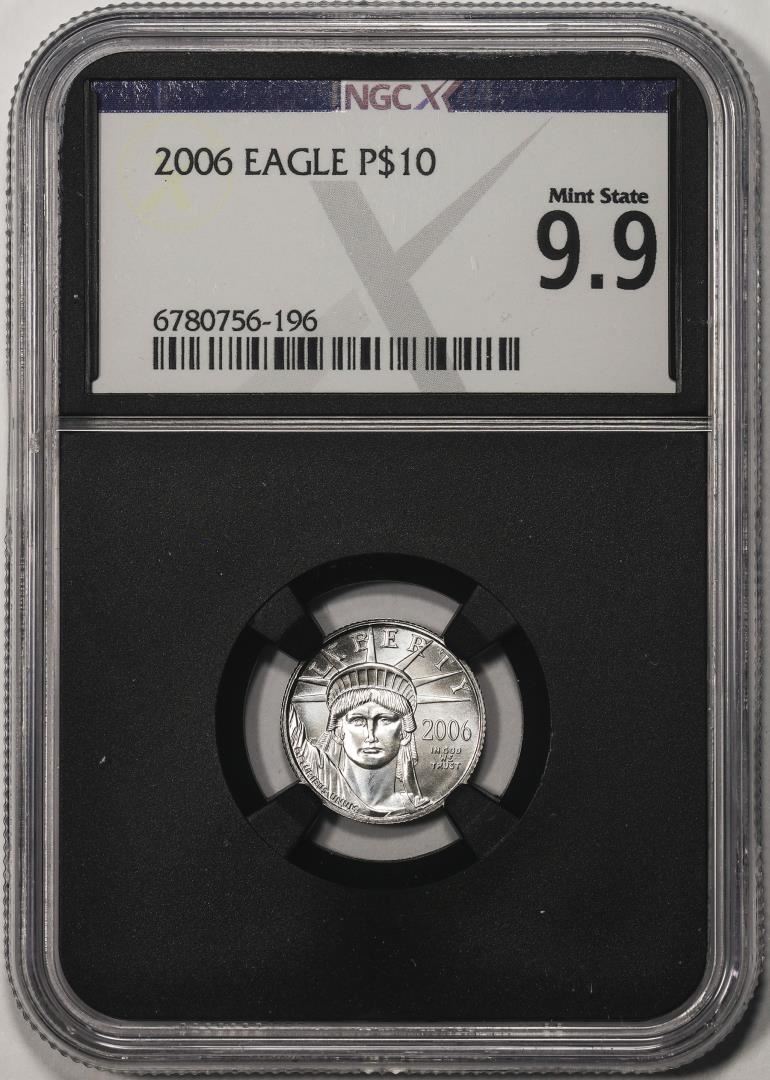 One 2006 $10 Platinum American Eagle Coin NGCX Mint State 9.9. NGCX Certified.