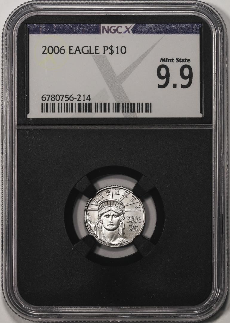 One 2006 $10 Platinum American Eagle Coin NGCX Mint State 9.9. NGCX Certified.