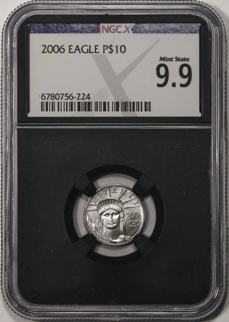 One 2006 $10 Platinum American Eagle Coin NGCX Mint State 9.9. NGCX Certified.