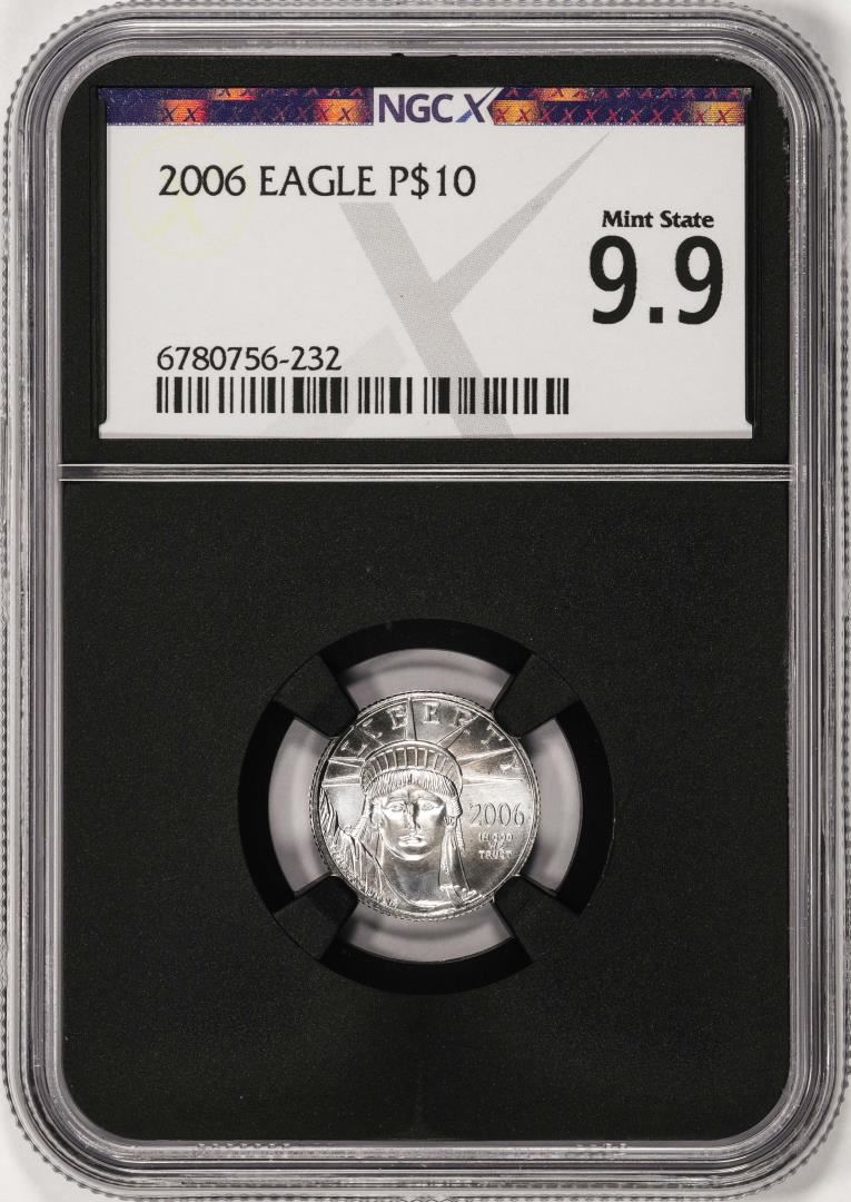 One 2006 $10 Platinum American Eagle Coin NGCX Mint State 9.9. NGCX Certified.