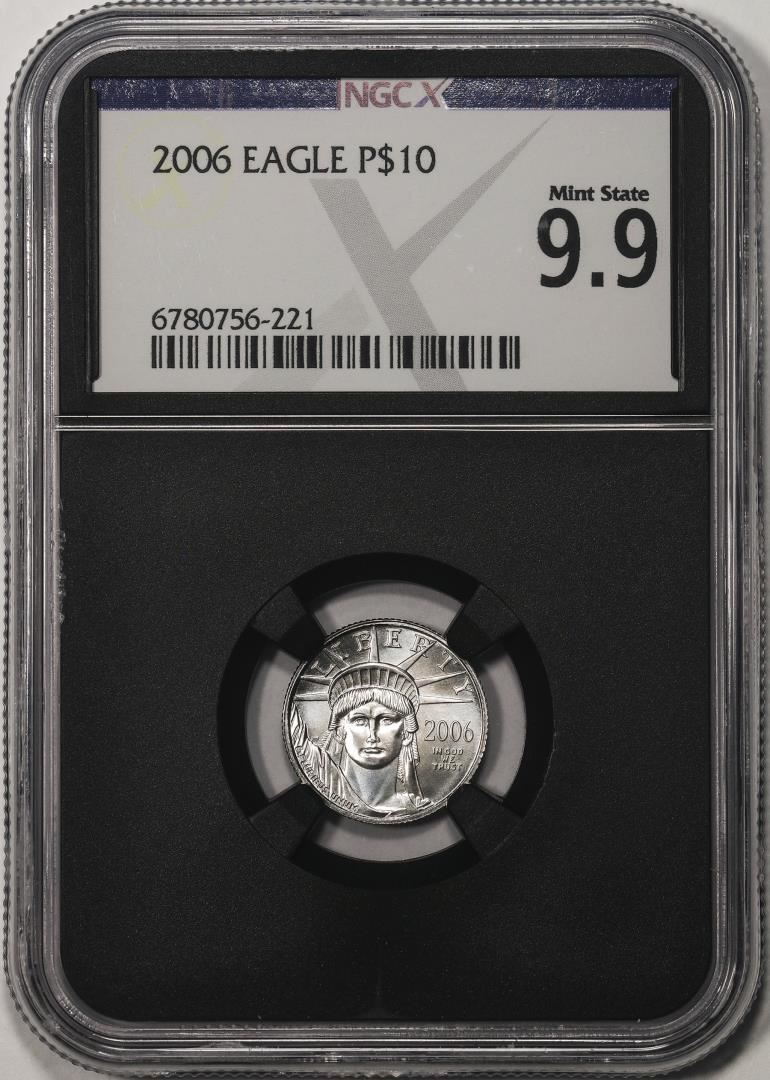 One 2006 $10 Platinum American Eagle Coin NGCX Mint State 9.9. NGCX Certified.
