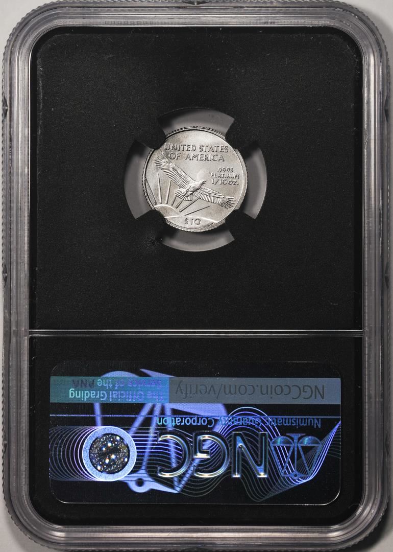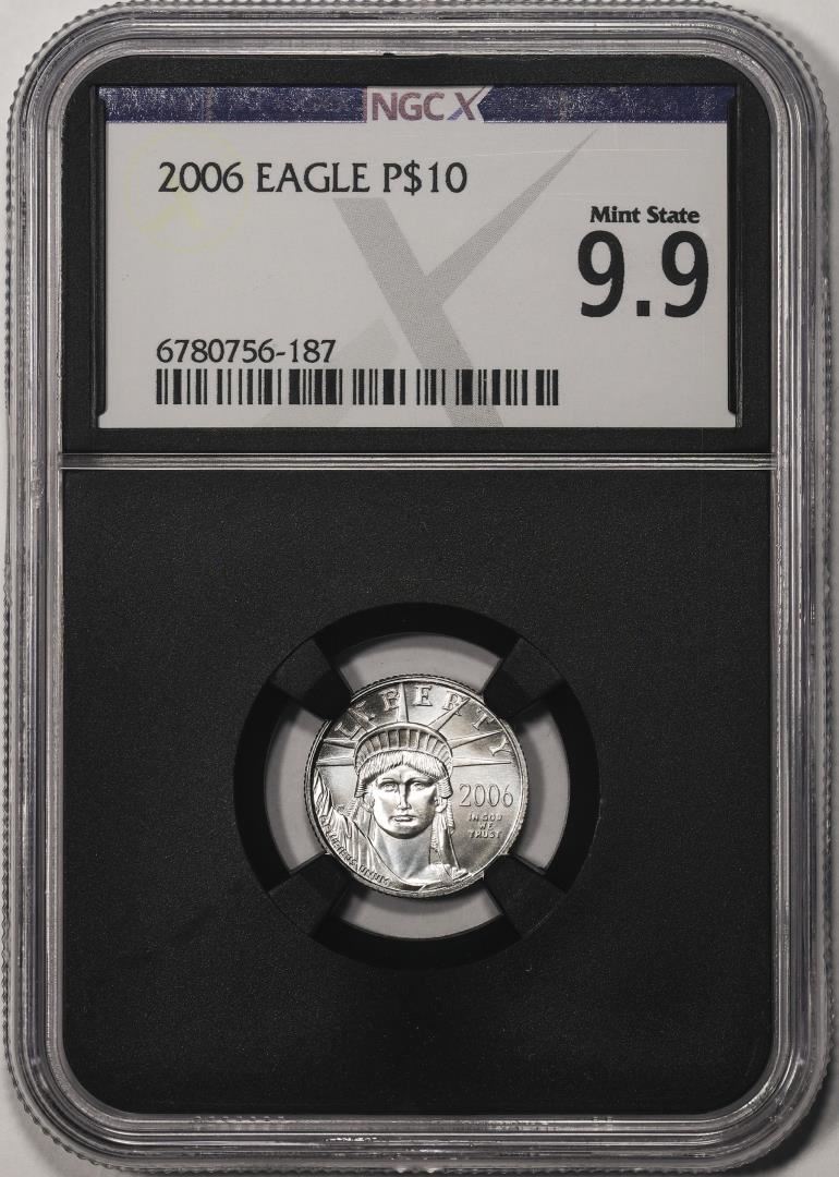 One 2006 $10 Platinum American Eagle Coin NGCX Mint State 9.9. NGCX Certified.