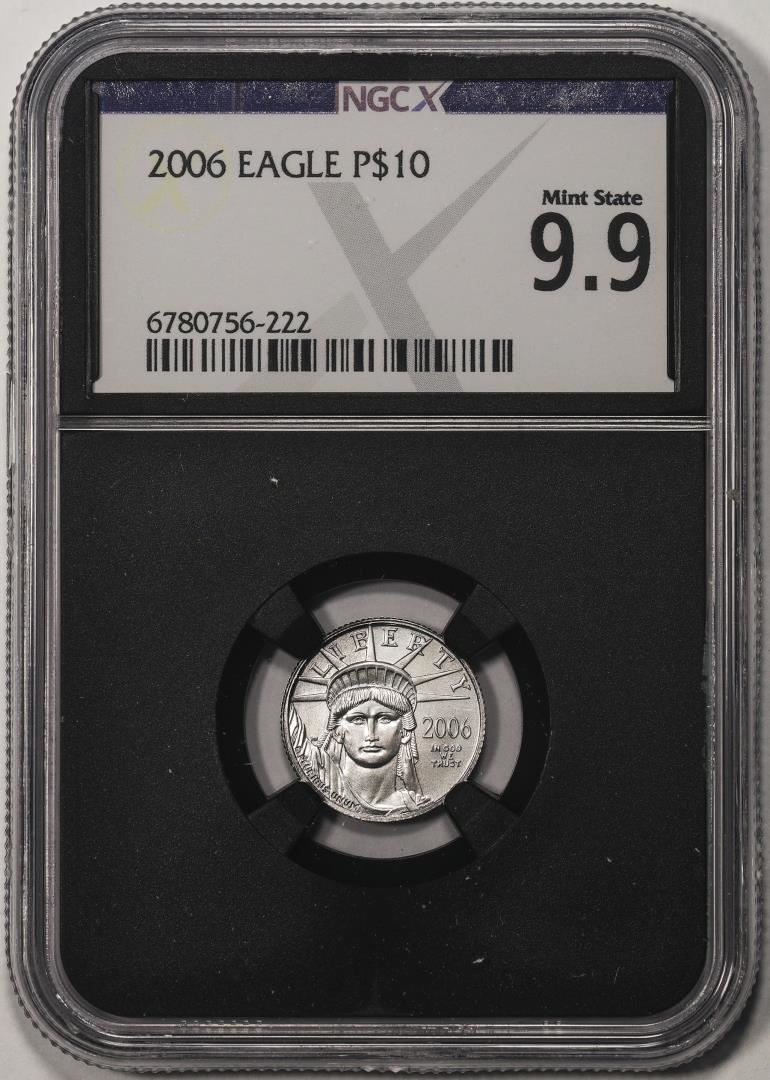 One 2006 $10 Platinum American Eagle Coin NGCX Mint State 9.9. NGCX Certified.