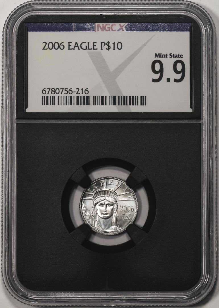 One 2006 $10 Platinum American Eagle Coin NGCX Mint State 9.9. NGCX Certified.