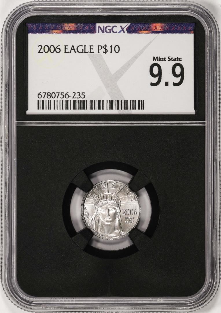 One 2006 $10 Platinum American Eagle Coin NGCX Mint State 9.9. NGCX Certified.