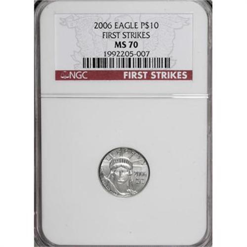 <B>2006 $10 Tenth-Ounce Platinum MS70 NGC.</B></I> NGC Census: (0/0). PCGS Population (99/0). (#821116)<BR><BR><b>Shipping:</b> Coins & Currency (<a target="_blank" href="http://www.heritageauctions.com/common/shipping.php">view shipping information</a>)