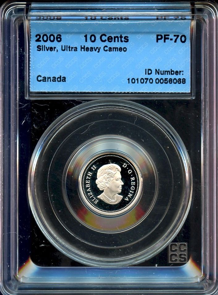 2006 10¢ silver, CCCS PF-70 Ultra Heavy Cameo.