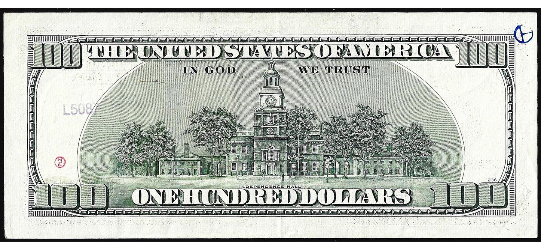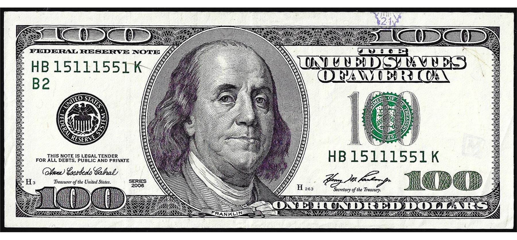 One 2006 $100 Federal Reserve Note Binary Serial Number.