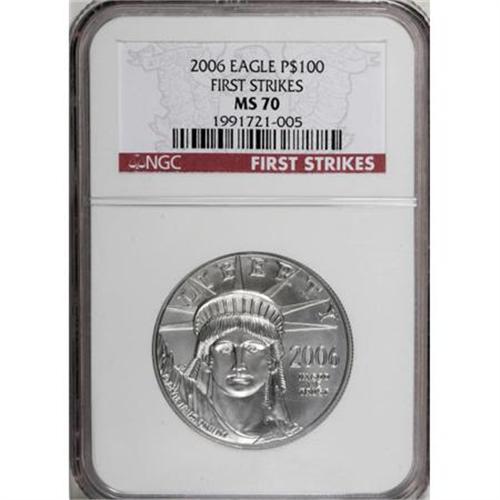 <B>2006 $100 One Ounce Platinum Statue of Liberty First Strike MS70 NGC.</B></I> NGC Census: (0/0). PCGS Population (37/0). (#821115)<BR><BR><b>Shipping:</b> Coins & Currency (<a target="_blank" href="http://www.heritageauctions.com/common/shipping.php">view shipping information</a>)
