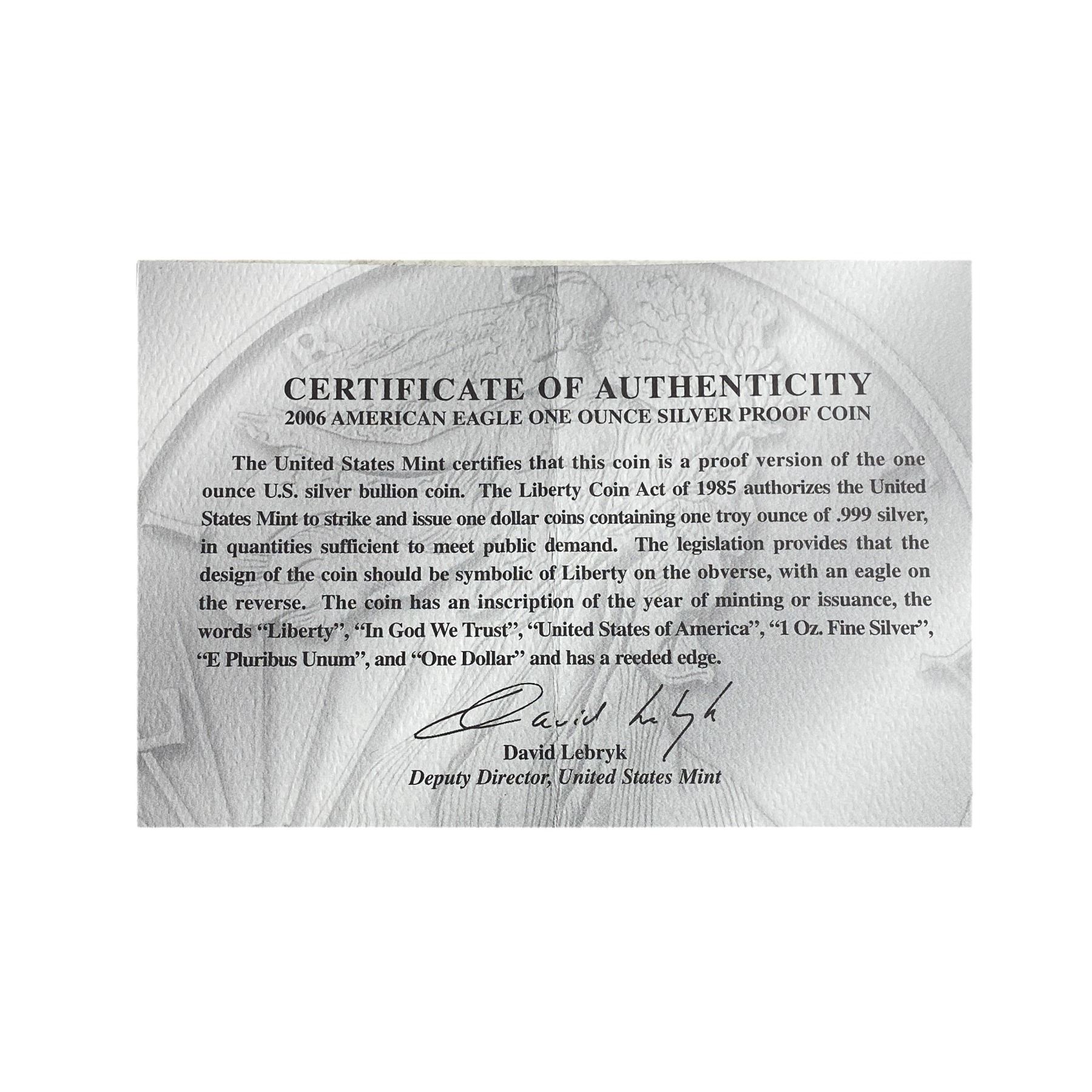 2006 1oz Proof Silver Eagle Coin