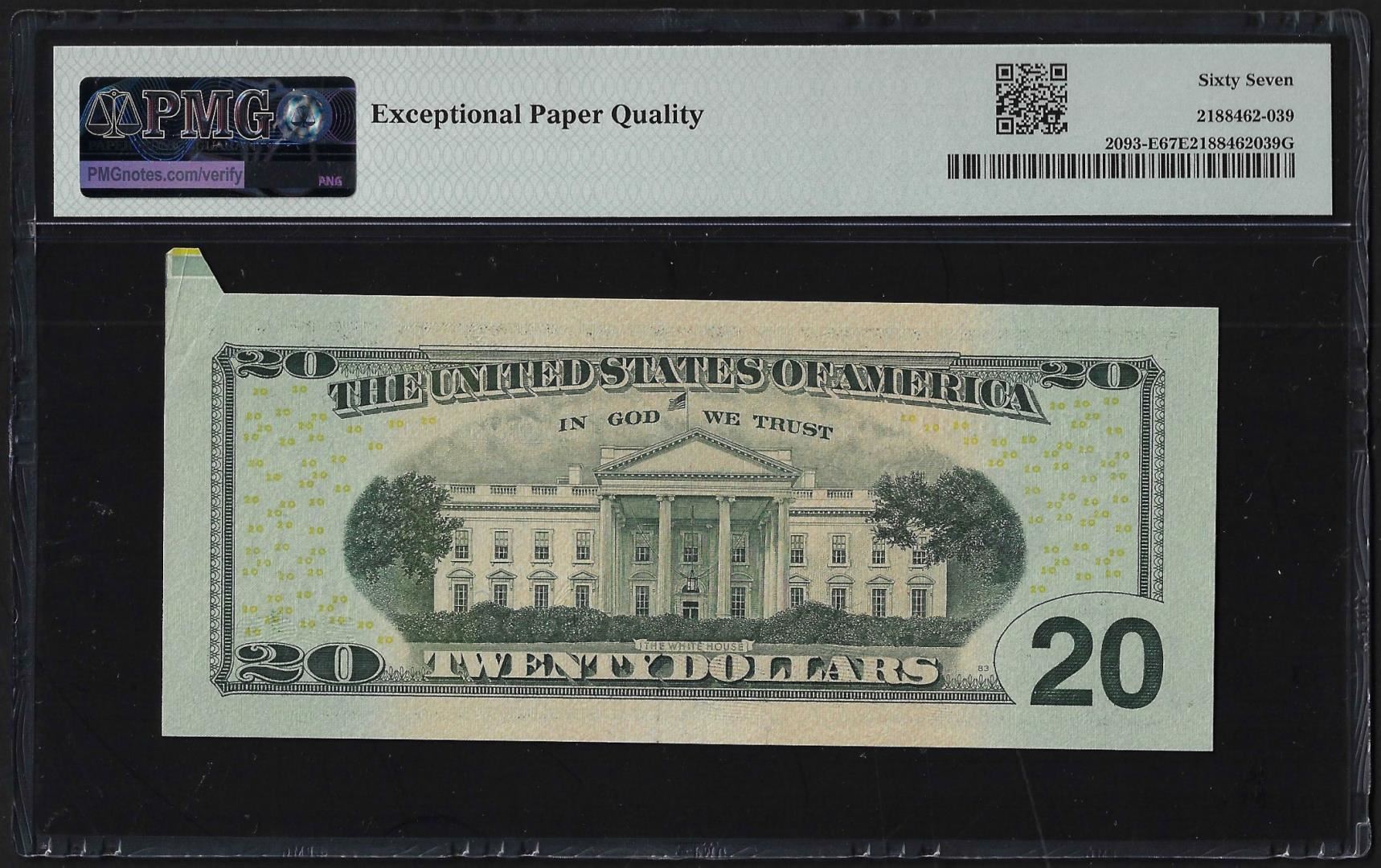 One 2006 $20 Federal Reserve Fold Over Error Note Fr.2090-E PMG Superb Gem Unc 67EPQ. PMG Certified.