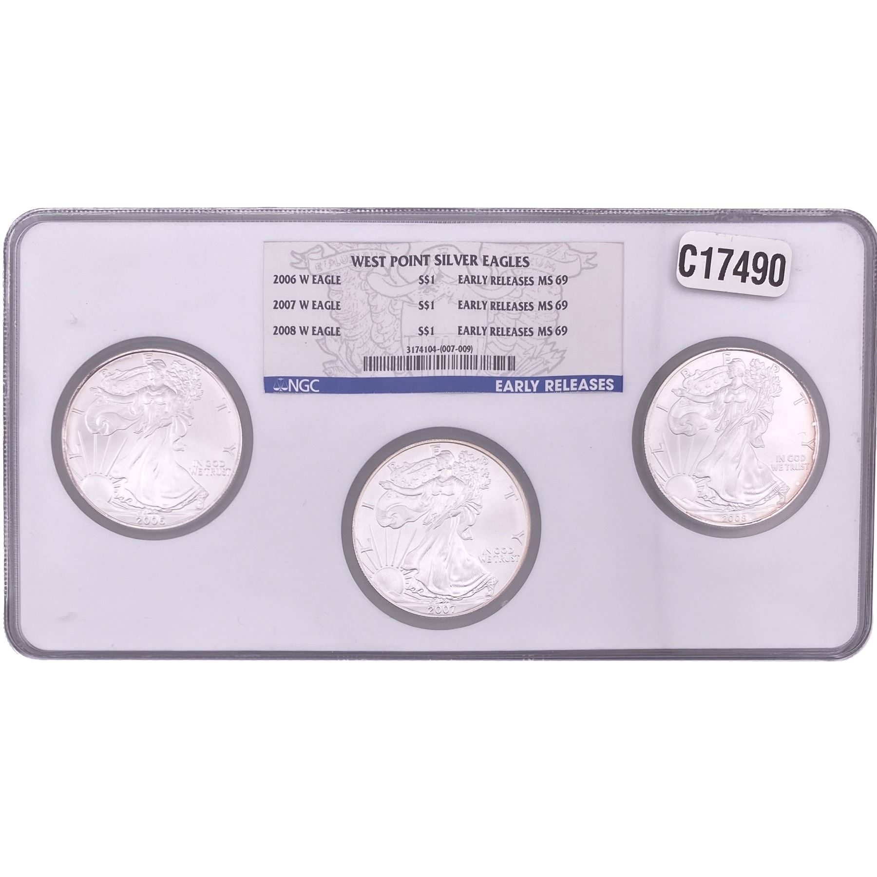 2006-2008 West Point Silver Eagle Set NGC MS69