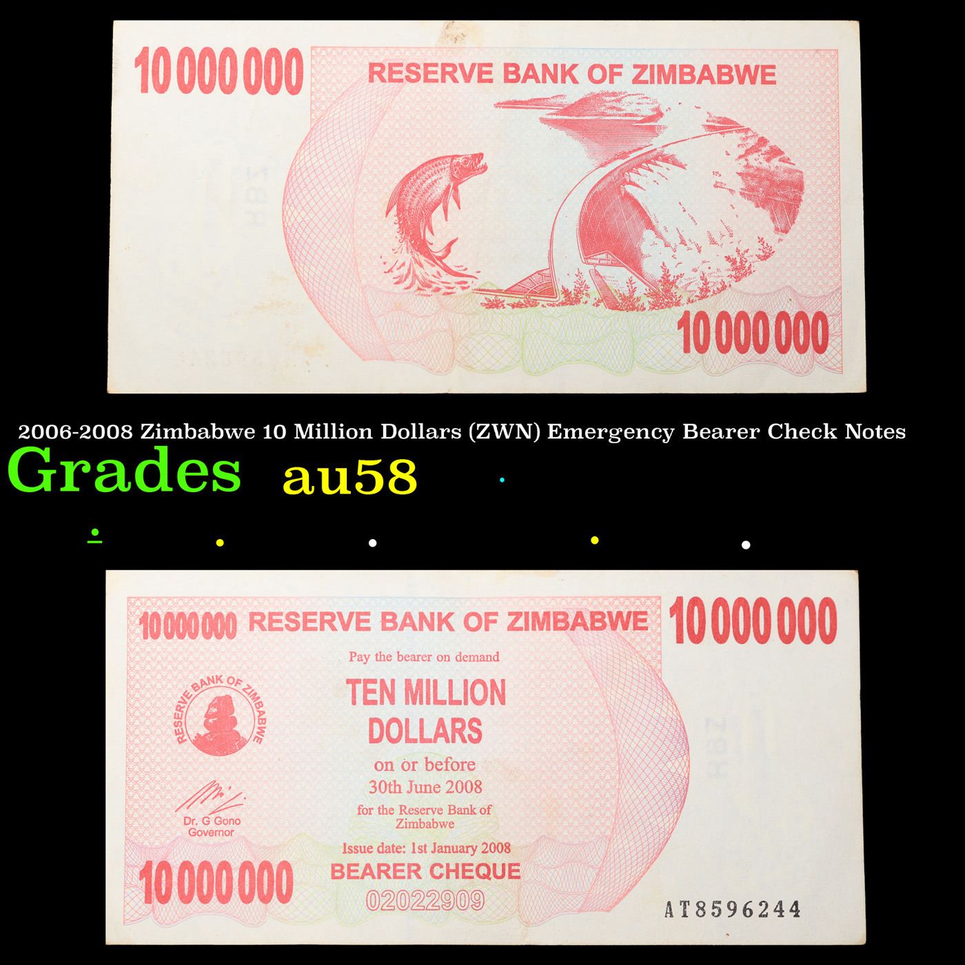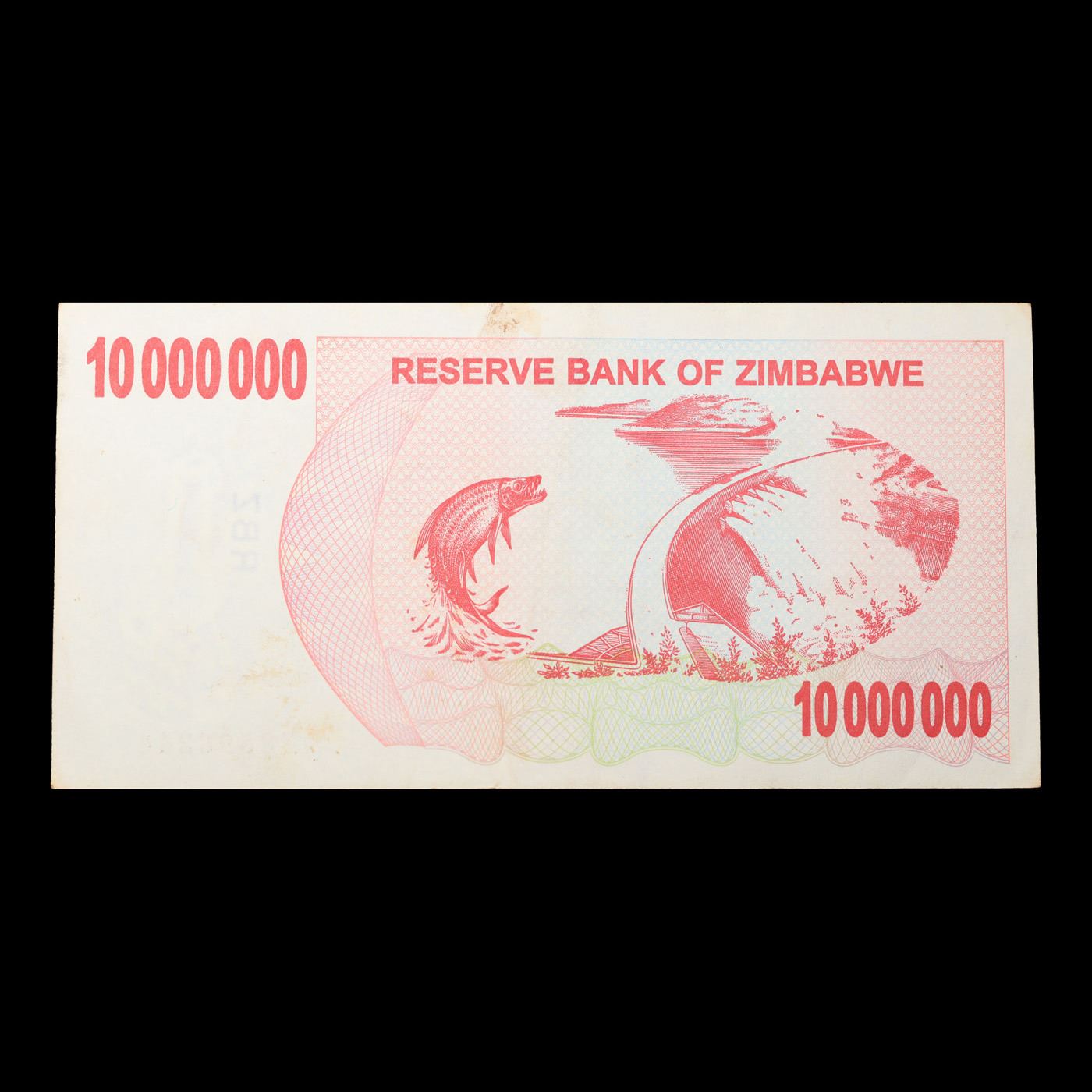 2006-2008 Zimbabwe 10 Million Dollars (ZWN) Emergency Bearer Check Notes Grades Choice AU/BU Slider. Hyperinflation in Zimbabwe is an ongoing crisis. While yearly inflation was often measured in the hundreds of percentage points in the early 2000s, from 2007 to 2008 it was measured in the millions, and then trillions. The first Zimbabwean dollar (ZWD) was abandoned in 2005 and replaced with the second (ZWN). The second had to be abandoned again in August 2008, and its replacement currency (ZWR) became obsolete due to ongoing hyperinflation only 6 months later, resulting in a third replacement currency (ZWL). The ZWL was formally demonetised in 2015, and Zimbabwe generally relies on a variety of foreign currencies for local trade.