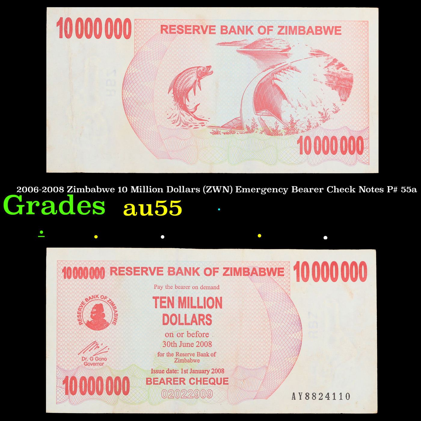 2006-2008 Zimbabwe 10 Million Dollars (ZWN) Emergency Bearer Check Notes P# 55a Grades Choice AU