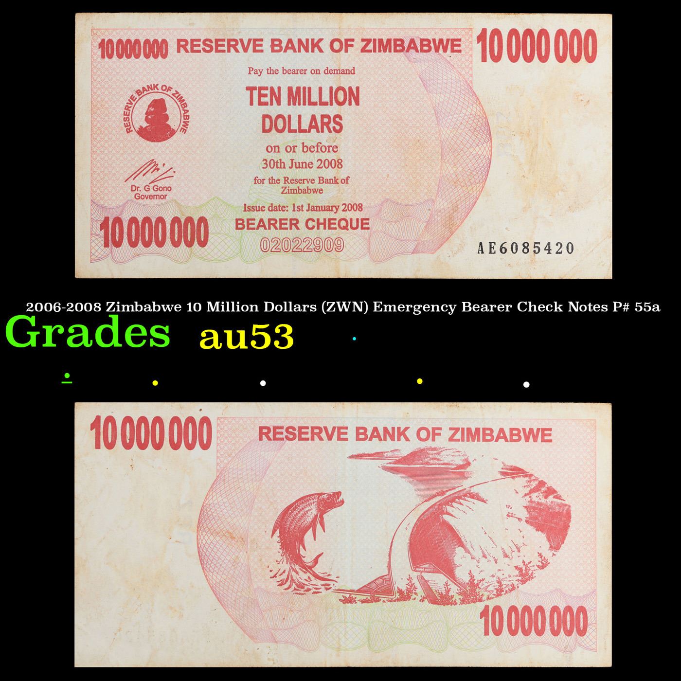2006-2008 Zimbabwe 10 Million Dollars (ZWN) Emergency Bearer Check Notes P# 55a Grades Select AU