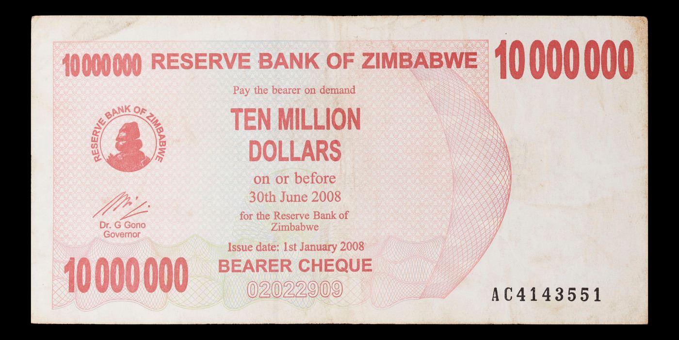 2006-2008 Zimbabwe 10 Million Dollars (ZWN) Emergency Bearer Check Notes P# 55a Grades vf++. Hyperinflation in Zimbabwe is an ongoing crisis. While yearly inflation was often measured in the hundreds of percentage points in the early 2000s, from 2007 to 2008 it was measured in the millions, and then trillions. The first Zimbabwean dollar (ZWD) was abandoned in 2005 and replaced with the second (ZWN). The second had to be abandoned again in August 2008, and its replacement currency (ZWR) became obsolete due to ongoing hyperinflation only 6 months later, resulting in a third replacement currency (ZWL). The ZWL was formally demonetised in 2015, and Zimbabwe generally relies on a variety of foreign currencies for local trade.
