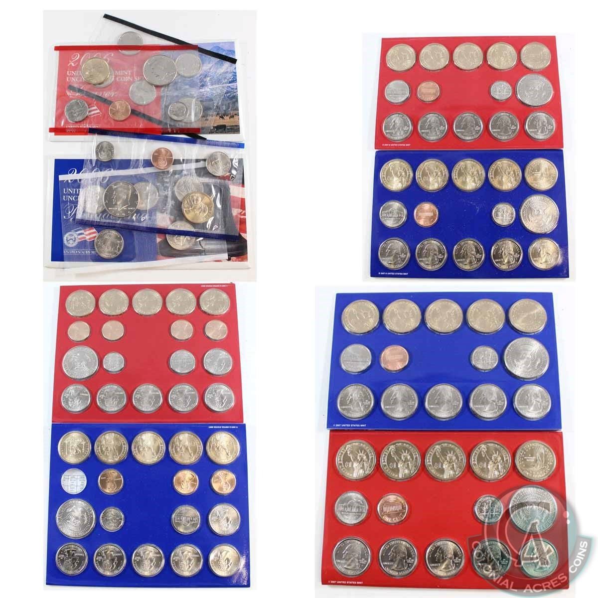 2006-2009 United States P & D Uncirculated Mint Sets. You will receive each Set issued between 2006 and 2009. 4pcs.
