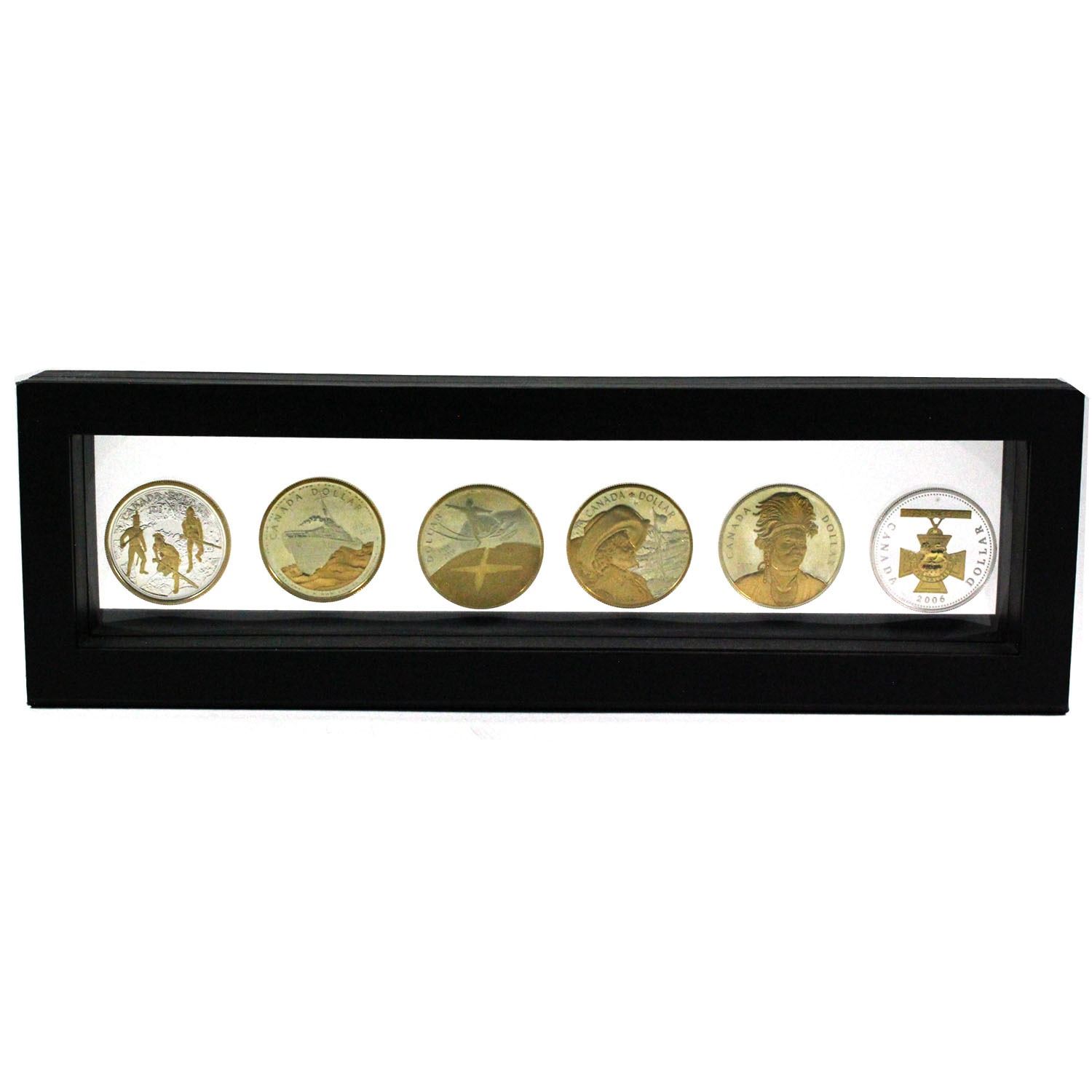 2006-2010 & 2012 Canada Gold Plated Proof Silver Dollars in Magic Window Frame (2007-2010 coins are all toned). 6pcs