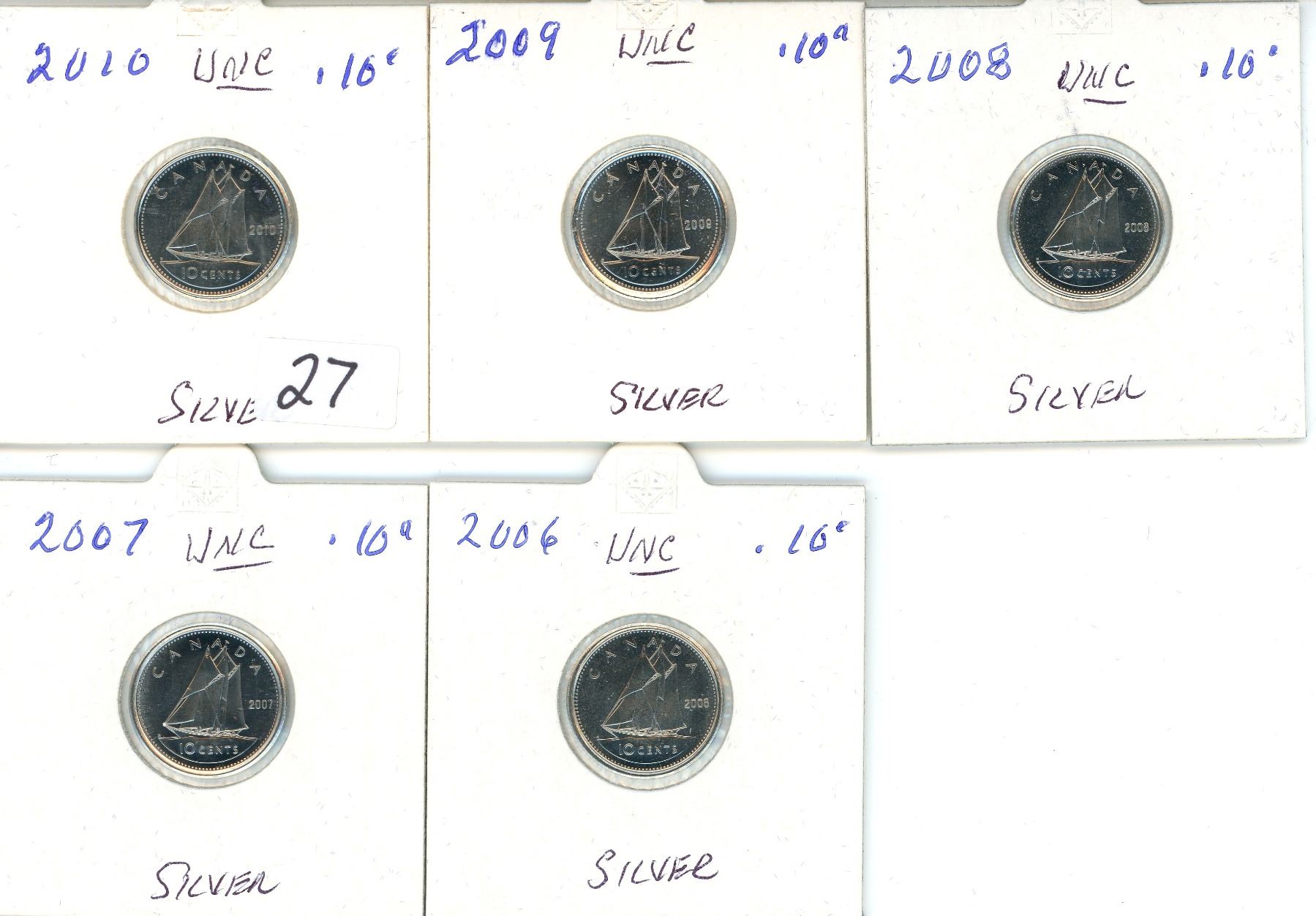 2006-2010 (5) 10¢ Coins