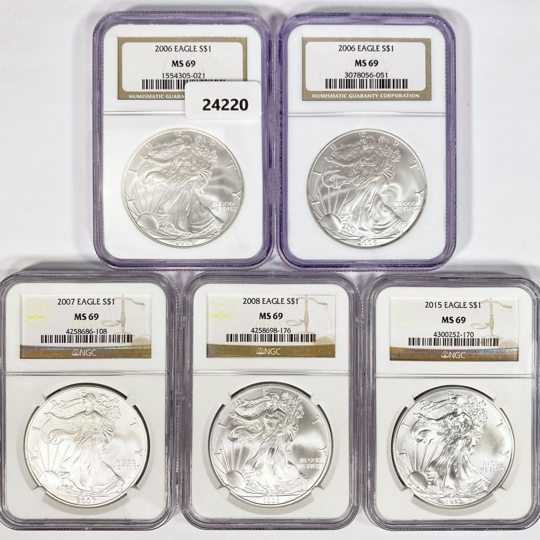 2006-2015 Set (5) American Silver Eagles NGC MS69