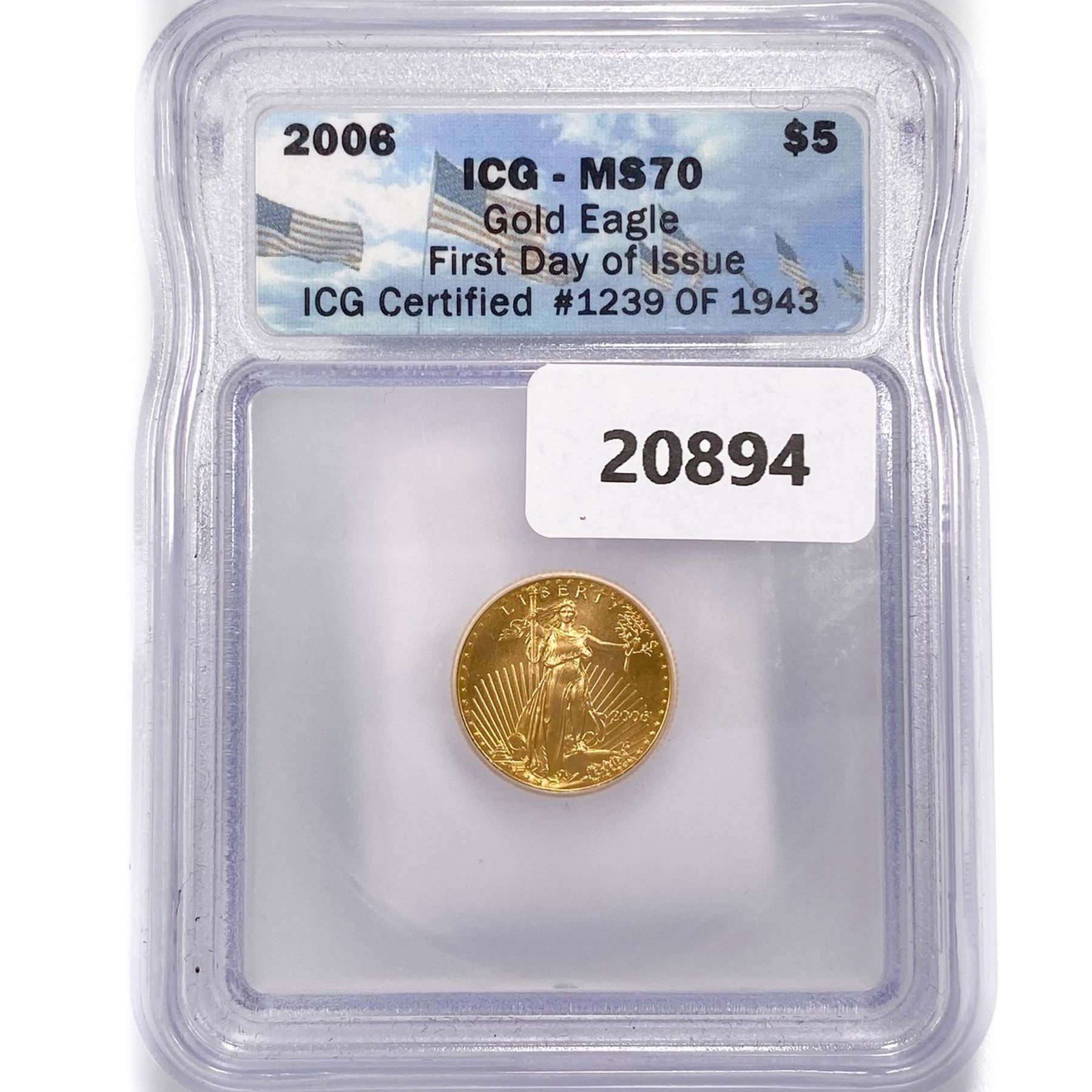 2006 $5 1/10oz AGE ICG MS70 1st Day