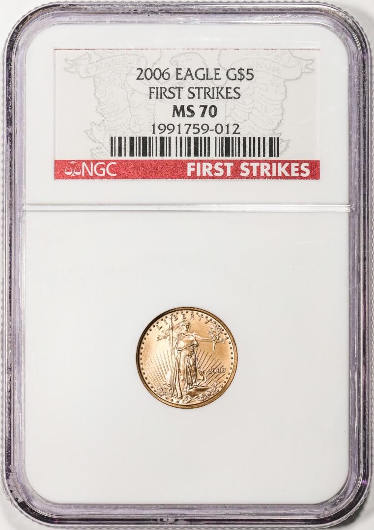 One 2006 $5 American Gold Eagle Coin NGC MS70 First Strikes. NGC Certified.