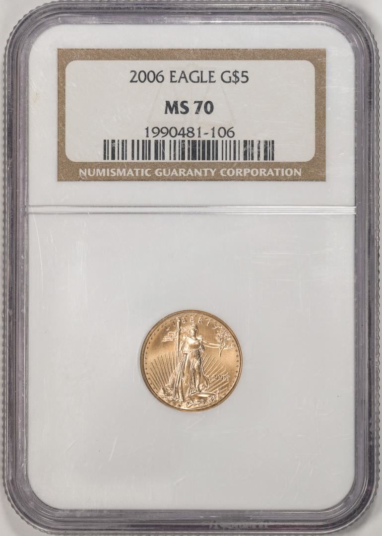 One 2006 $5 American Gold Eagle Coin NGC MS70. NGC Certified.