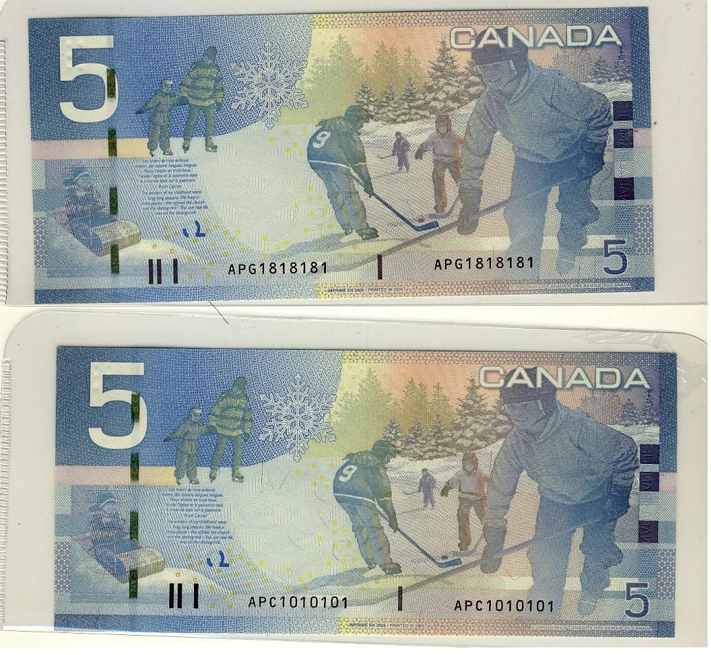 2006 $5 BC-67a #APC1010101 & APG1818181. Lot of 2 RADAR / REPEATER notes both UNC.