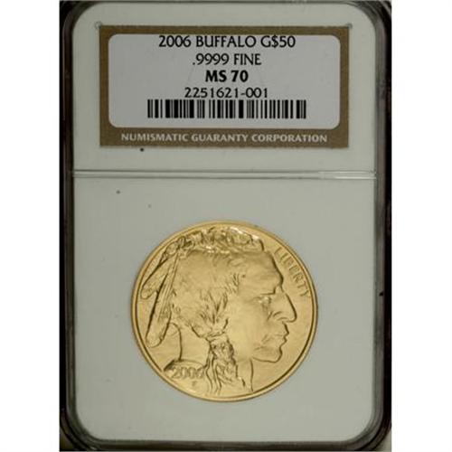 <B>2006 $50 One Ounce Gold Buffalo MS70 NGC.</B></I> NGC Census: (0/0). PCGS Population (357/0). Numismedia Wsl. Price for NGC/PCGS coin in MS70: $925. (#9999)<BR><BR><b>Shipping:</b> Coins & Currency (<a target="_blank" href="http://www.heritageauctions.com/common/shipping.php">view shipping information</a>)