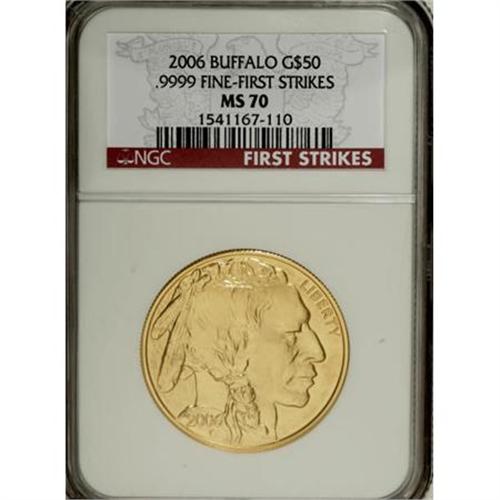 <B>2006 $50 One Ounce Gold Buffalo MS70 NGC.</B></I> NGC Census: (0/0). PCGS Population (358/0). Numismedia Wsl. Price for NGC/PCGS coin in MS70: $925. (#9999)<BR><BR><b>Shipping:</b> Coins & Currency (<a target="_blank" href="http://www.heritageauctions.com/common/shipping.php">view shipping information</a>)