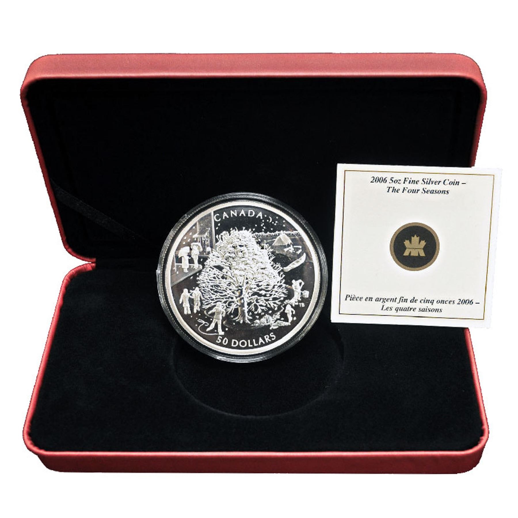 2006 $50 The Four Seasons 5oz Fine Silver Coin (Capsule lightly scratched). Mintage of only 2000! (TAX Exempt)