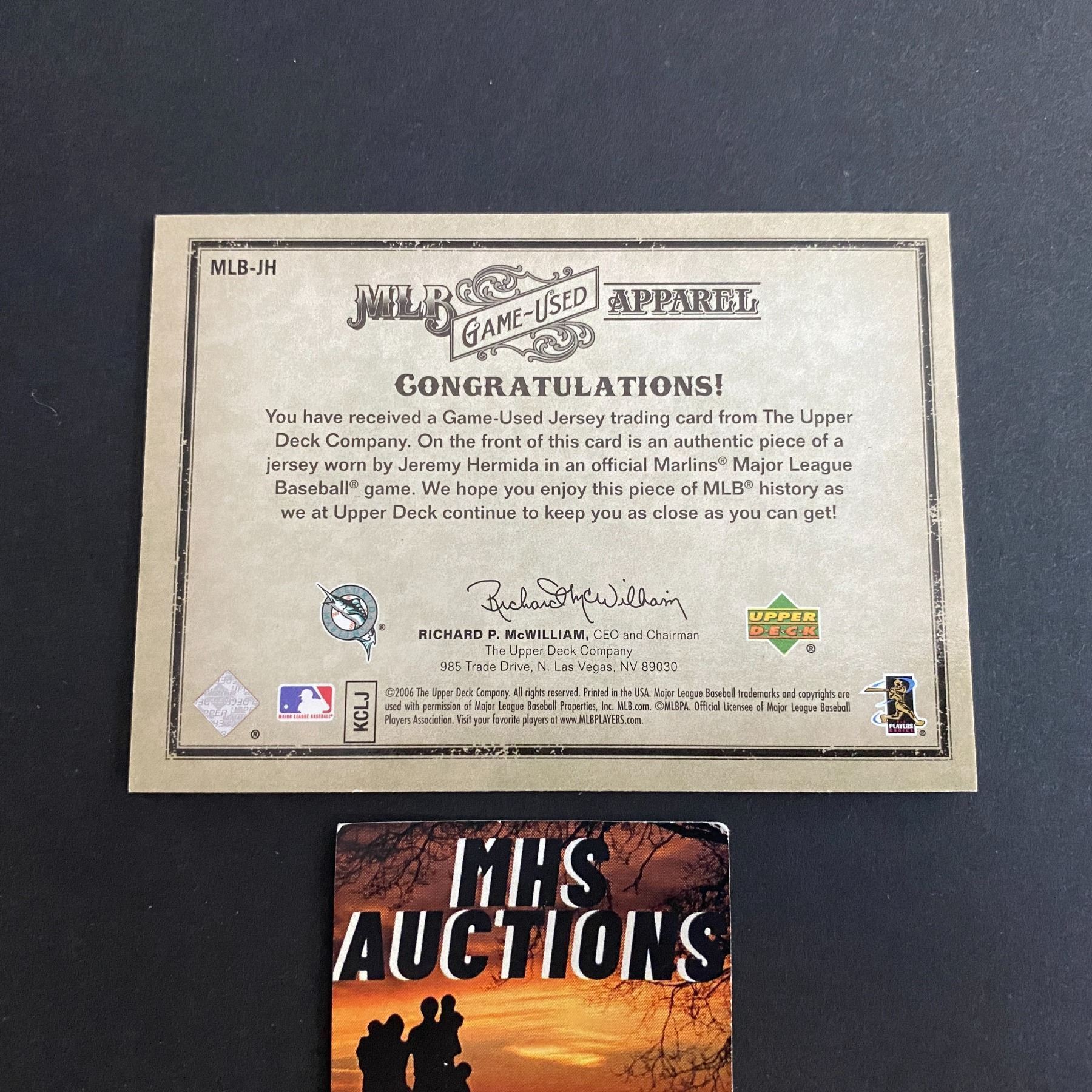 2006 ARTIFACTS JEREMY HERMIDA JERESY CARD #195/325