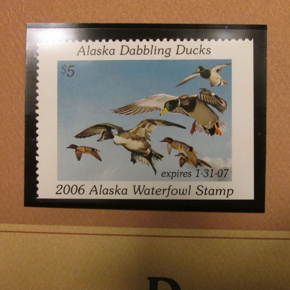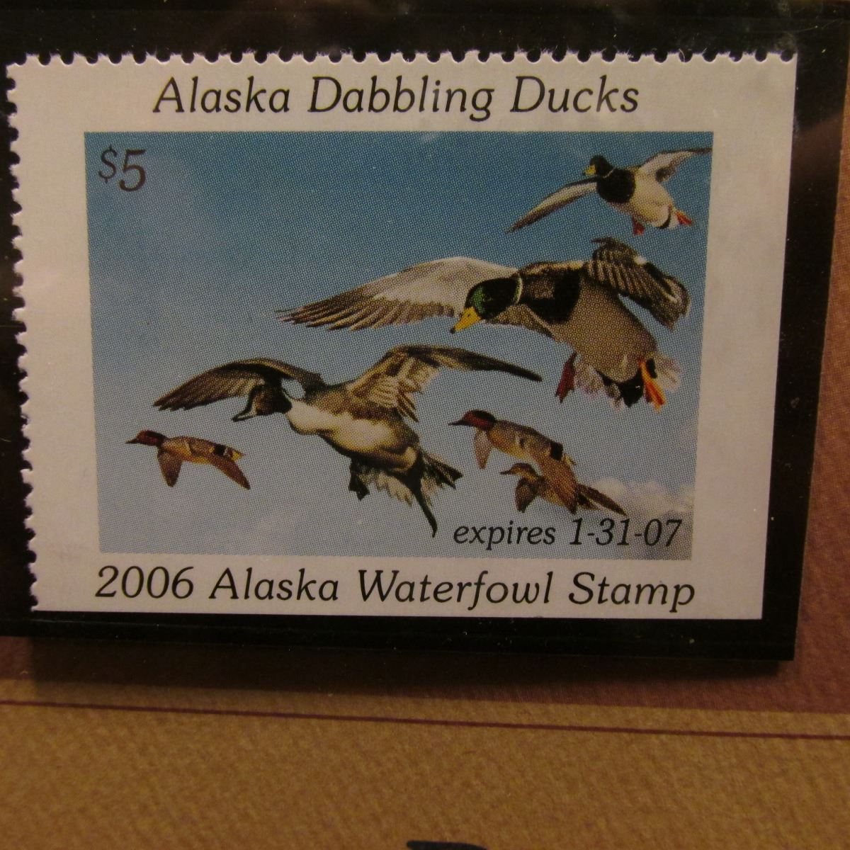 2006 Alaska Waterfowl $5 Stamp depicting Dabbling Ducks, Pristine Mint condition in plastic page wit