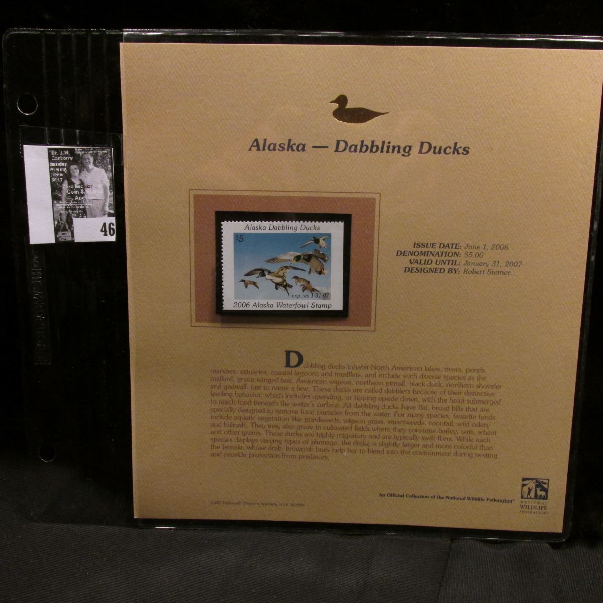 2006 Alaska Waterfowl $5 Stamp depicting Dabbling Ducks, Pristine Mint condition in plastic page with literature