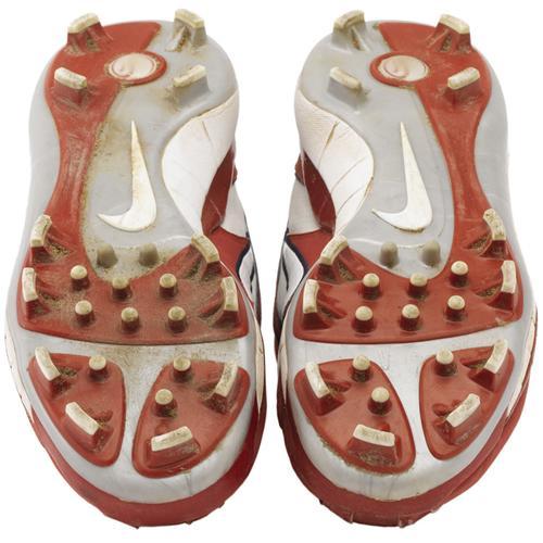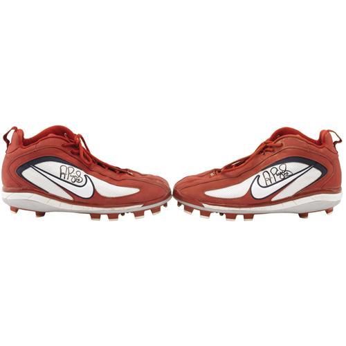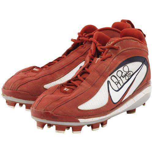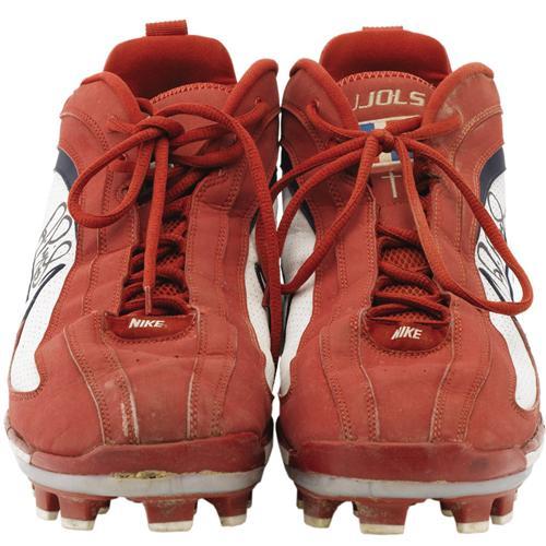 <B>2006 Albert Pujols Game Worn Cleats.</B></I> Go to the videotape and you'll see the superstar St. Louis Cardinals slugger sporting this model throughout the 2006 season, and on through the club's glorious World Series sweep. These heavily customized size thirteen and a half high tops feature both secular (Name, number, Dominican flag) and spiritual (the Cross, What Would Jesus Do?) modifications, and show nice wear from the game's top power hitter. Each is signed in 10/10 black sharpie. With World Championship season vintage and Pujols pedigree, this is a lot that students of the game will follow very closely. <I>LOA from Lou Lampson. LOA from PSA/DNA. LOA from James Spence Authentication.</B></I><BR><BR><b>Shipping:</b> Miscellaneous Collectibles, Larg (<a target="_blank" href="http://www.heritageauctions.com/common/shipping.php">view shipping information</a>)