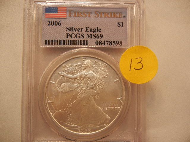 2006 American Silver Eagle, .999 Fine Silver, 1 Troy Oz., First Strike, Graded by PCGS MS69