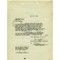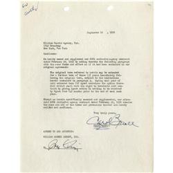 <B>Group Lot of Two Signed Contracts and One Letter.</B></I> This lot includes a William Morris exclusive agency contract dated Ap...