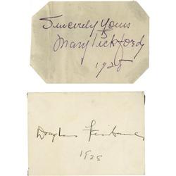 <B>Douglas Fairbanks and Mary Pickford Signatures Set.</B></I> The original celebrity power couple, Douglas Fairbanks and Mary Pic...