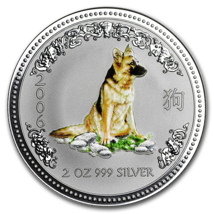 2006 Australia 2 oz Silver Year of the Dog BU (Colorized)