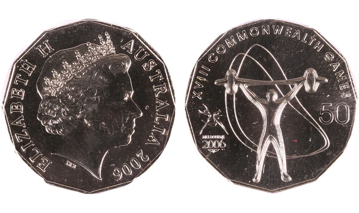 2006 Australian  Weightlifting  Fifty Cent Coin - PCGS MS67