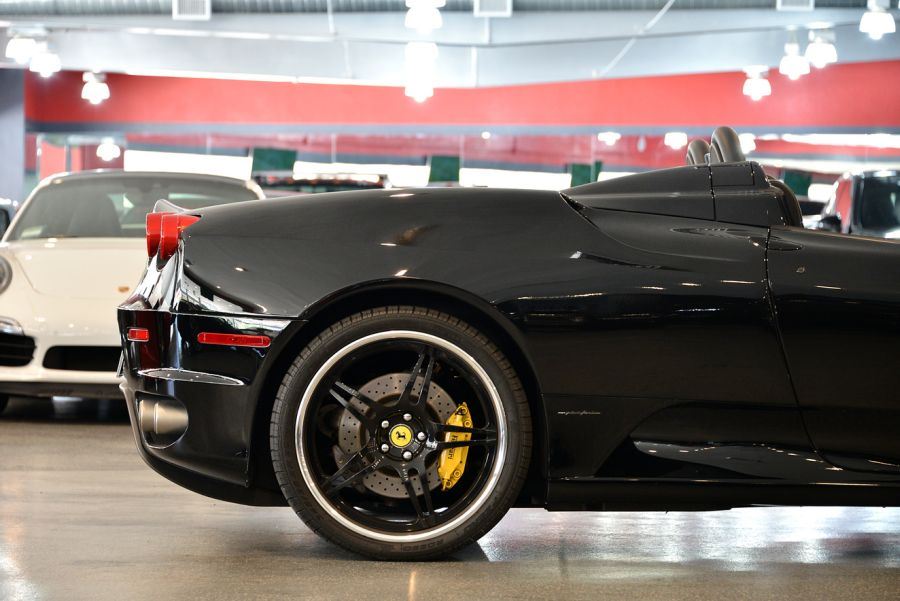 This 2006 Black Ferrari F430 Spider F1 Convertible comes equipped with a 4.3L V-8 cyl engine and a 6 speed automatic with auto-shift trasmission and rear-wheel drive ability. It has a mere 10,992 miles and has an average of 13 city MPG and 17 highway MPG. Vin #ZFFEW59AFJ34847058.