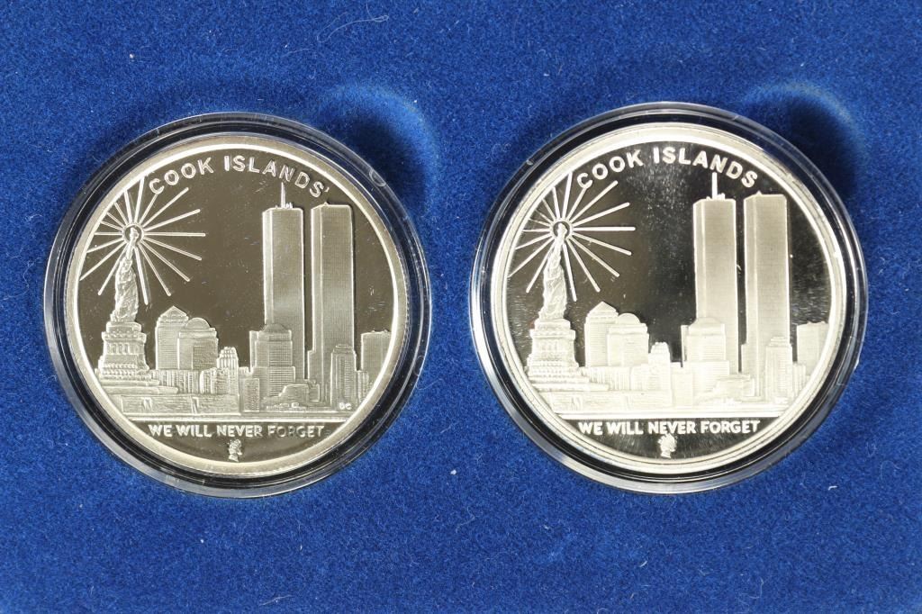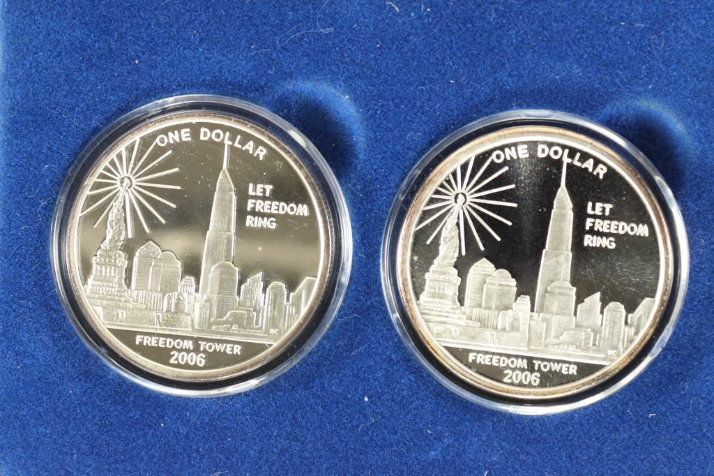 1 TROY OZ .999 FINE SILVER PROOF COIN AND ONE OTHER PROOF COIN (NOT SILVER) IN BLUE CASE